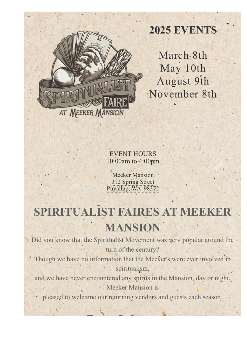 The Meeker Mansion holds their spiritualist faire! Come and enjoy the historic mansion and a live reading!